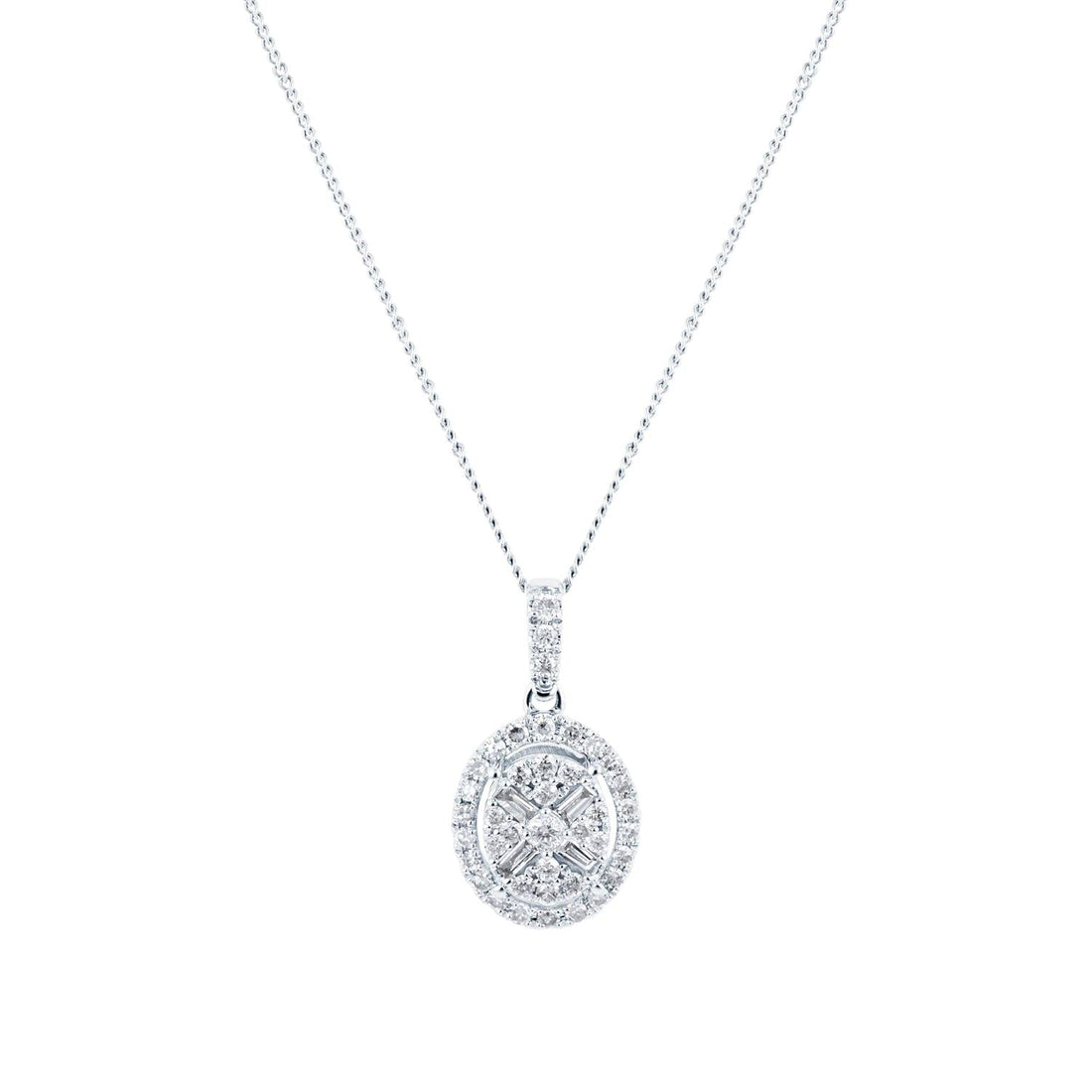 9ct White Gold 0.25ct Diamond Oval Cluster Pendant