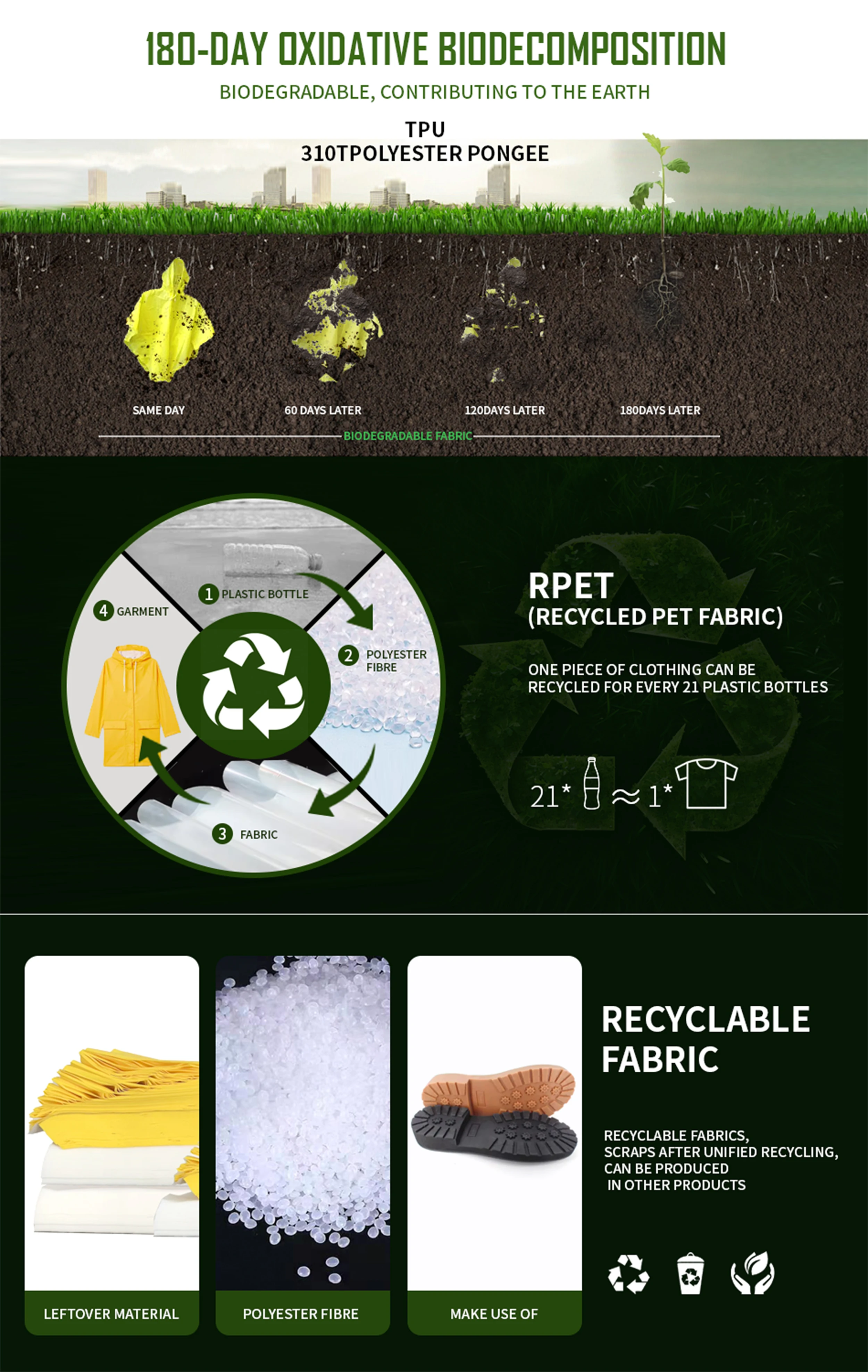 Our factory's dedicated R&D department is committed to bringing your ideal rain jacket to life. We offer a complimentary customization service, allowing you to personalize your fashion, stylish, and eco-friendly products to suit your specific needs. Whether you want to adjust the fit, add extra features, or modify the design, our expert team is here to help. This free service ensures that you receive a rain jacket that not only meets but exceeds your expectations, combining functionality with your personal style preferences. Experience the perfect blend of sustainability, practicality, and individuality with our bespoke rainwear solutions.